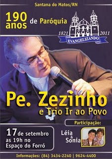 Isso Mesmo é amanhã dia 17 de setembro de 2011 o Pe. Zezinho e Trio Ir ao Povo fará show em Santana do Matos abrindo a semana de comemorações pelos 190 anos da Paróquia de Sant´ana. É a primeira vez que o Pe. Zezinho vem a Santana do Matos já o Trio Ir ao Povo e a segunda vez que vem a terra de Santana.