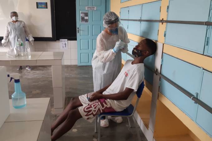 Agente de saúde faz teste para o novo coronavírus em Salvador (BA) | Foto: Governo da Bahia/Divulgação